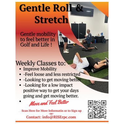 Our Gentle Roll & Stretch class is designed for golfers and active adults who want to loosen up, move better, and feel their best — both on and off the course.